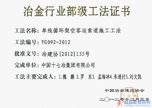 中國(guó)十七冶:榮獲5項(xiàng)部級(jí)工法