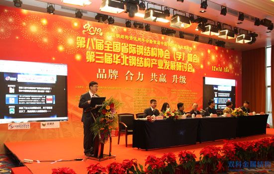 2012年度北京鋼結(jié)構(gòu)行業(yè)獲獎(jiǎng)名單總攬 12月15日,第八屆全國(guó)省際鋼結(jié)構(gòu)行業(yè)協(xié)(學(xué))會(huì)峰會(huì)暨第三屆華北鋼結(jié)構(gòu)產(chǎn)業(yè)發(fā)展研討會(huì)在北京隆重召開。 主席臺(tái)就坐的領(lǐng)導(dǎo)有:北京市住房和城鄉(xiāng)建設(shè)委員會(huì)建筑業(yè)管理處孫景怡副處長(zhǎng),中國(guó)建筑金屬結(jié)構(gòu)協(xié)會(huì)建筑鋼結(jié)構(gòu)委員會(huì)尹敏達(dá)主任,中國(guó)鋼結(jié)構(gòu)協(xié)會(huì)呂晶副秘書長(zhǎng),北京市建設(shè)工程物資協(xié)會(huì)王立臣會(huì)長(zhǎng),天津市鋼結(jié)構(gòu)學(xué)會(huì)陳志華理事長(zhǎng),北京市建設(shè)工程物資協(xié)會(huì)建筑鋼結(jié)構(gòu)分會(huì)多躍剛會(huì)長(zhǎng),多為聯(lián)合集團(tuán)多維寬董事長(zhǎng)等7位協(xié)會(huì)、企業(yè)領(lǐng)導(dǎo),并為獲得2012年度“北京鋼結(jié)構(gòu)行業(yè)十強(qiáng)企業(yè)”、“北京市新型節(jié)能夾芯板材十強(qiáng)企業(yè)”、“北京市集成房屋六強(qiáng)企業(yè)”、“北京鋼結(jié)構(gòu)行業(yè)優(yōu)秀企業(yè)家、杰出人物”等獲獎(jiǎng)企業(yè)和個(gè)人頒發(fā)了證書以及獎(jiǎng)杯,頒獎(jiǎng)環(huán)節(jié)由北京市建設(shè)工程物資協(xié)會(huì)建筑鋼結(jié)構(gòu)分會(huì)秘書長(zhǎng)常佳偉主持。近500位行業(yè)領(lǐng)導(dǎo)、專家、企業(yè)代表出席了當(dāng)天的盛會(huì)。 會(huì)上首先頒發(fā)了“2012年度北京市鋼結(jié)構(gòu)行業(yè)十強(qiáng)企業(yè)”他們分別是: