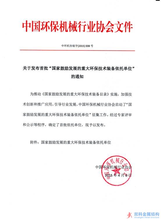 2014年12月19日,工信部、科技部、環(huán)境保護(hù)部等三部委聯(lián)合發(fā)布《國(guó)家鼓勵(lì)發(fā)展的重大環(huán)保技術(shù)裝備目錄(2014年版)》(以下簡(jiǎn)稱“2014年版目錄”),公司研發(fā)的“燃?xì)怆姀S低頻噪聲源頭治理成套裝備”列入2014年版目錄第六類“噪聲與振動(dòng)控制”項(xiàng)下,是2014年版目錄中列示的唯一與噪聲治理有關(guān)的技術(shù)裝備項(xiàng)目。 2014年版目錄發(fā)布后,中國(guó)環(huán)保機(jī)械行業(yè)協(xié)會(huì)受工信部委托于2015年1月啟動(dòng)了“國(guó)家鼓勵(lì)發(fā)展的重大環(huán)保技術(shù)裝備依托單位”征集工作,經(jīng)專家評(píng)審和公示等程序,最終確定了148家依托單位,華電重工股份有限公司被認(rèn)定為“燃?xì)怆姀S低頻噪聲源頭治理成套裝備”唯一依托單位。2015年4月8日,工信部在網(wǎng)站上公開發(fā)布了華電重工股份有限公司等148家依托單位名單。 經(jīng)過(guò)近四年的研發(fā),公司燃?xì)怆姀S噪聲源頭治理技術(shù)獲得重大突破,并在工程項(xiàng)目上成功實(shí)施應(yīng)用。此次被列入國(guó)家鼓勵(lì)發(fā)展目錄和被認(rèn)定為重大環(huán)保技術(shù)裝備依托單位,充分表明公司研發(fā)的噪音治理技術(shù)裝備獲得了國(guó)家層面的認(rèn)可,將對(duì)該項(xiàng)技術(shù)裝備的推廣應(yīng)用起到強(qiáng)有力的推動(dòng)作用。公司通過(guò)技術(shù)創(chuàng)新詮釋和踐行了“創(chuàng)造綠色生產(chǎn)、促進(jìn)生態(tài)文明”的企業(yè)理念。